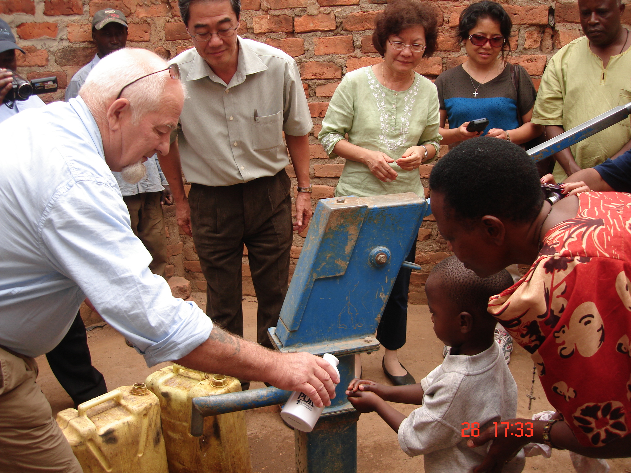 And then, by words and actions, Douglas Kasper sketched for us a deep and lived theology. He brought with him a bottle of water carried all the way from Joliet. As water was drawn from each newly commissioned well, he would pour the Joliet water onto it and let the two waters mix, blend and merge, and flow together, symbolizing the solidarity and unity of peoples and the sharing of blessings of the earth in common. This is not theology in an air-conditioned library; it is visual and concrete. This is not preaching faith; it is living faith. When faith is lived and alive like this, it touches people real deep and brings all closer to the heart of God.