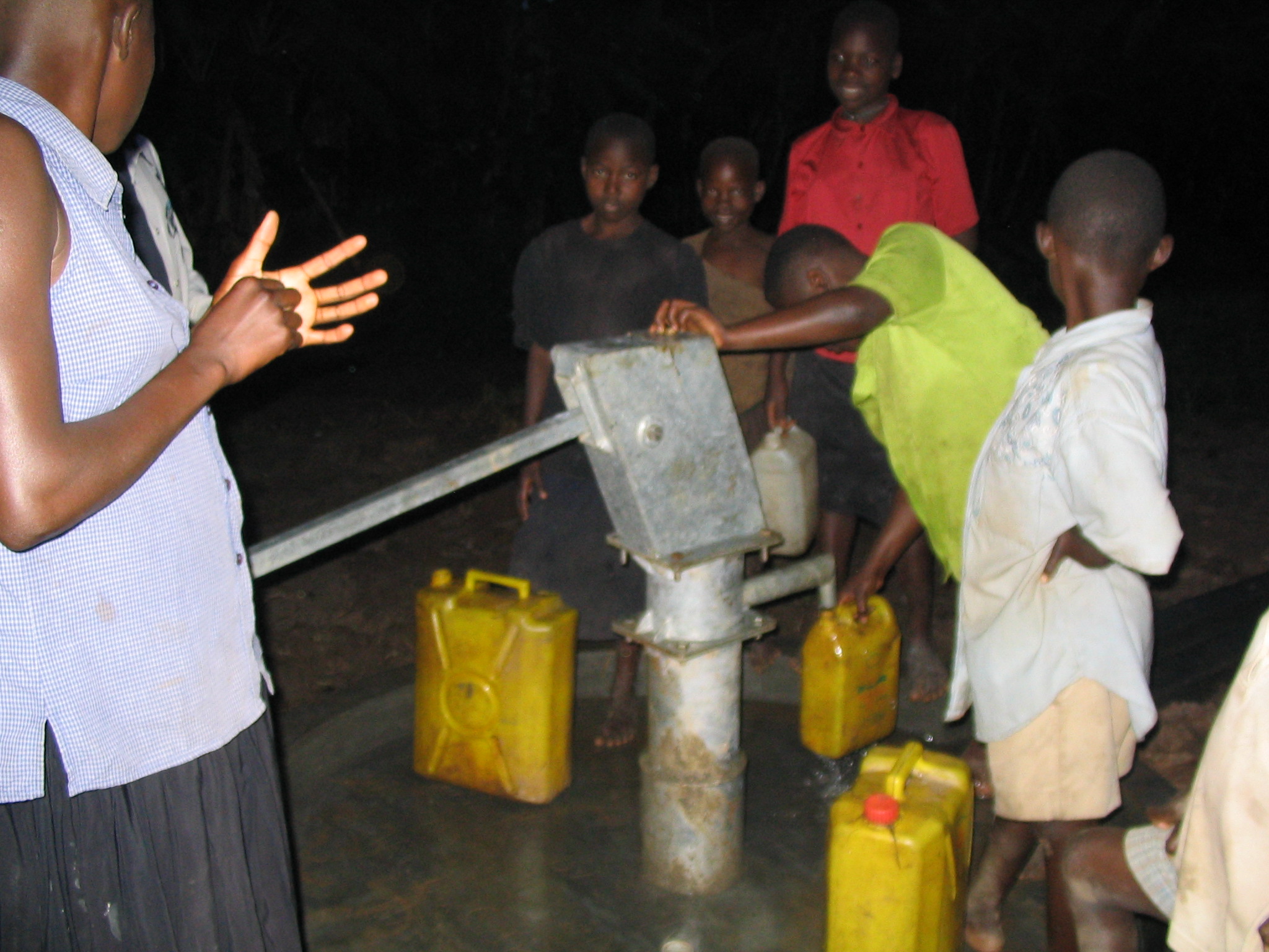 [1] Villagers waiting in anticipation for the first gush of clean water at Malube. [2] On the first gush of clean water, they all cried, washed themselves, played in it, and collected it. [3] And into the night young and old merrily collected water.